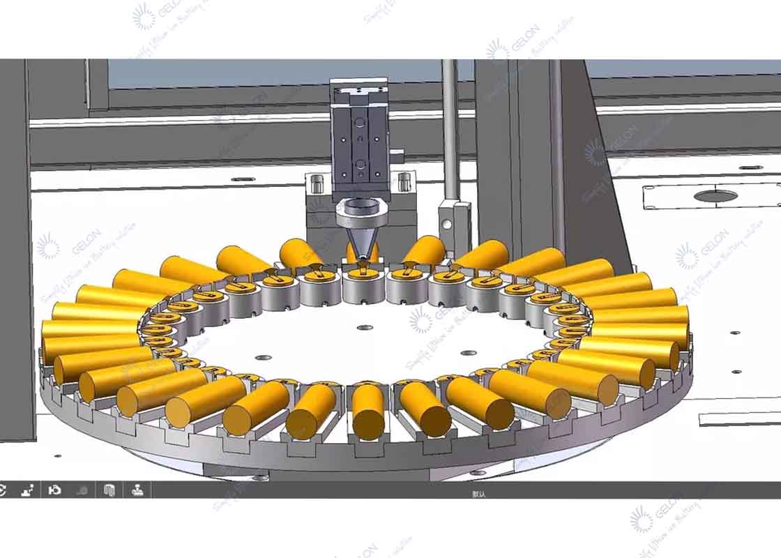 鋰離子圓柱電池極耳雷射焊接機圓柱電芯極耳雷射焊接機GN-W300Y-SC-MT雷射焊接機是集光、機、電於一體的系統整合設備,主要用於圓柱電芯極耳和極耳的焊接。